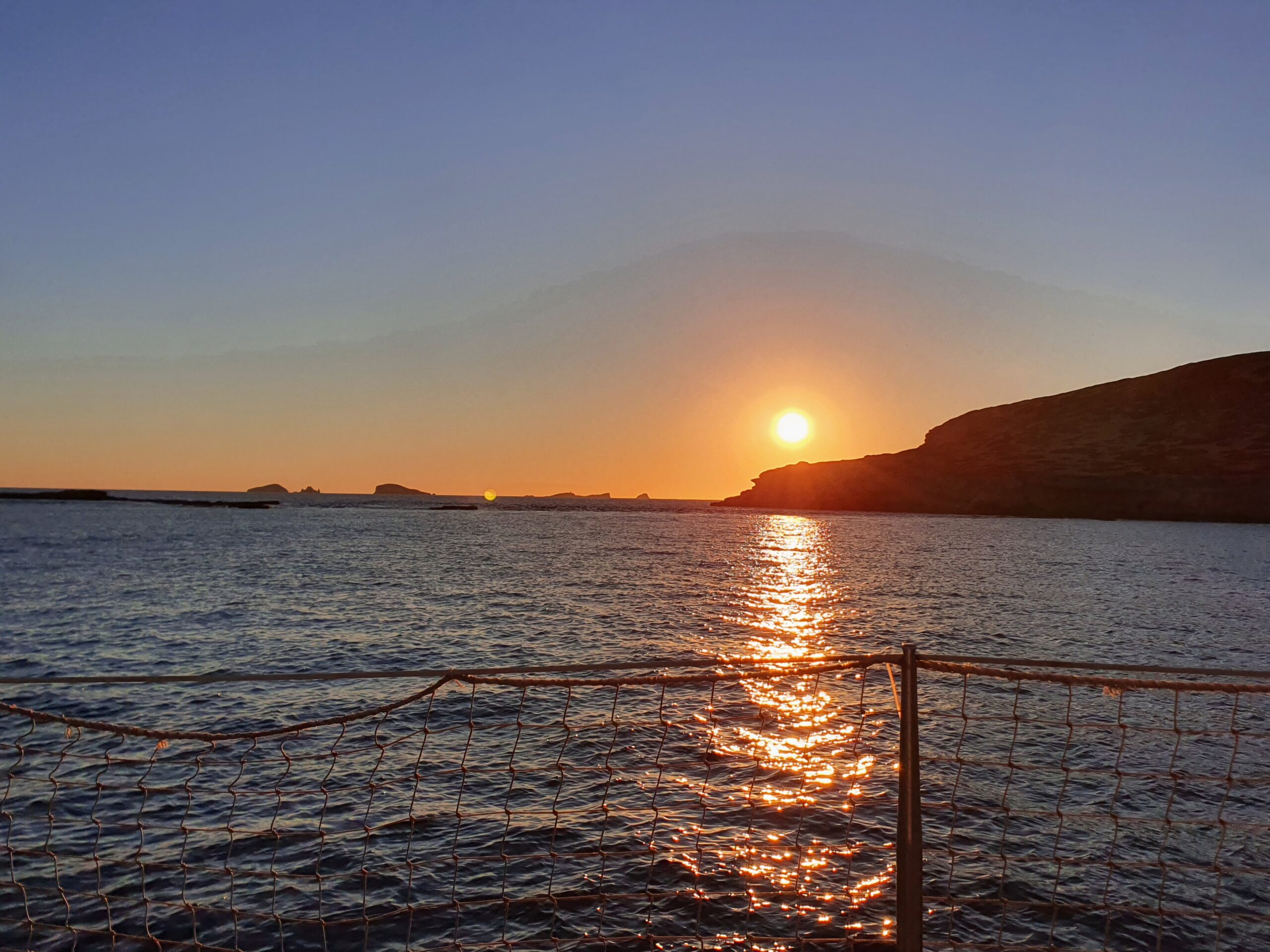 Es Vedra, dieser energiereiche Berg im Meer, entführt uns im blutroten Licht des Sonnenuntergangs in eine andere Welt. Energie, Licht, Wärme sind ihre ständigen Begleiter auf dieser Fahrt und sorgen für unvergessliche Eindrücke.